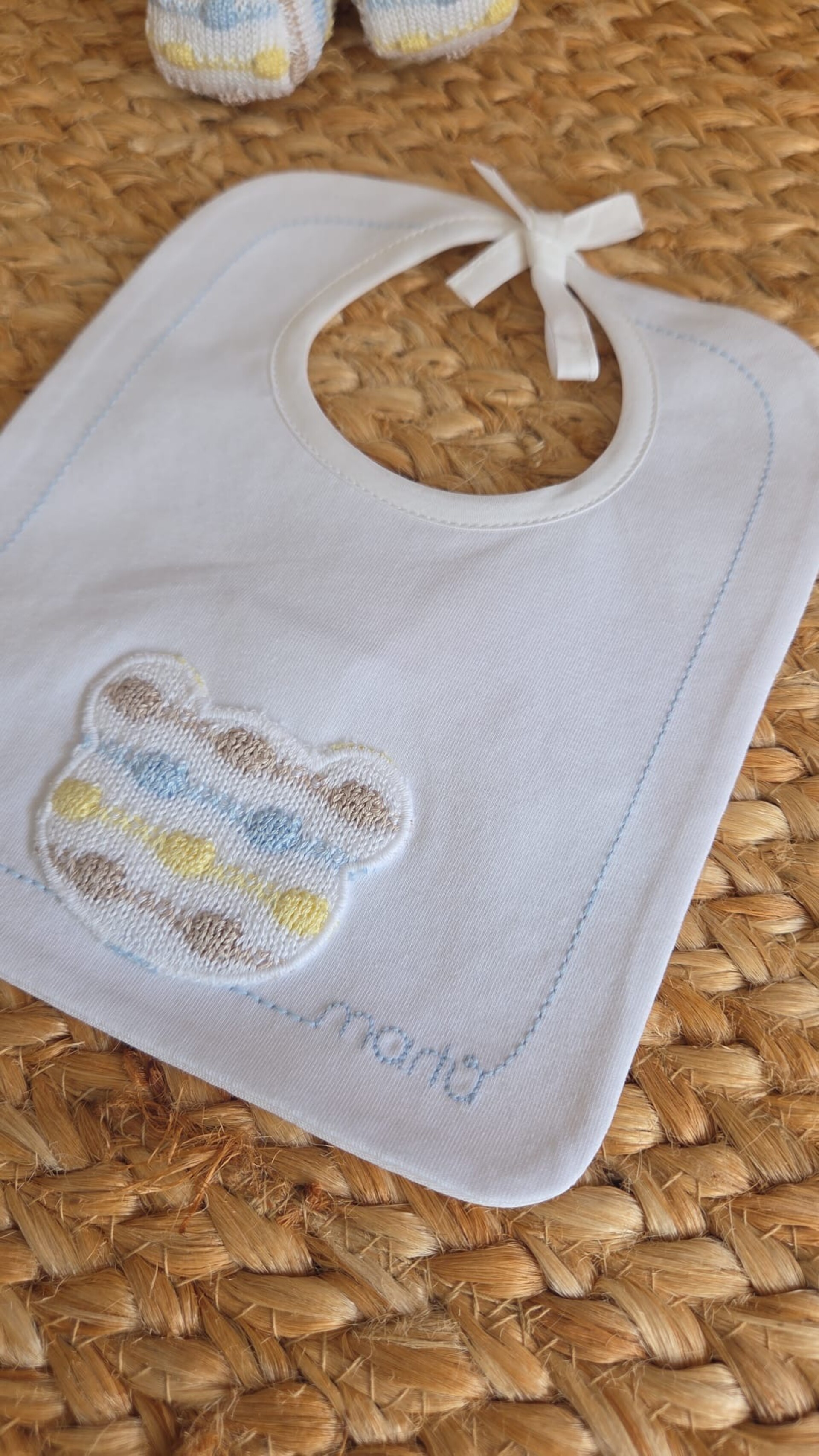 Bavetta in cotone con orsetto e fodera integrata.