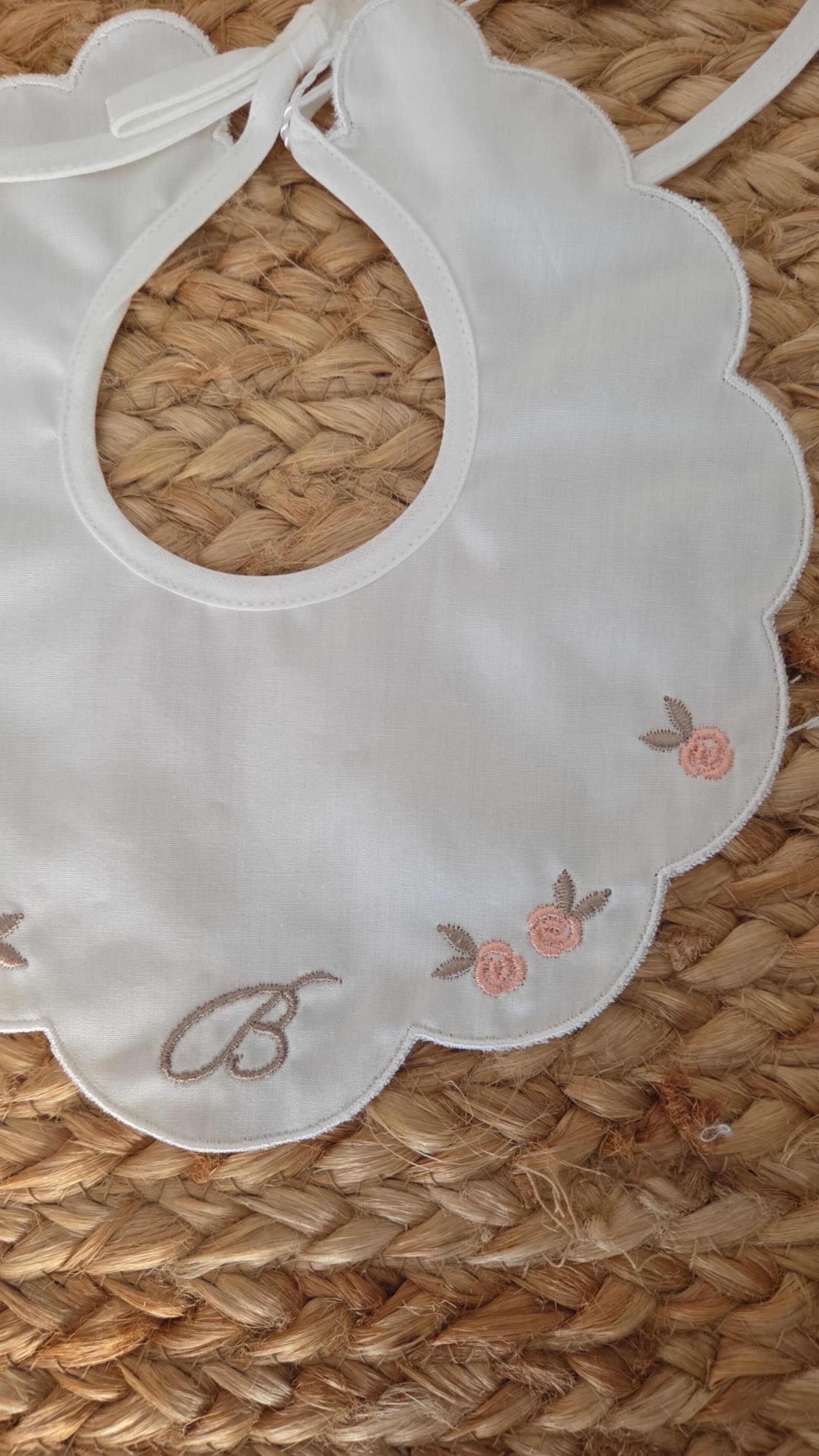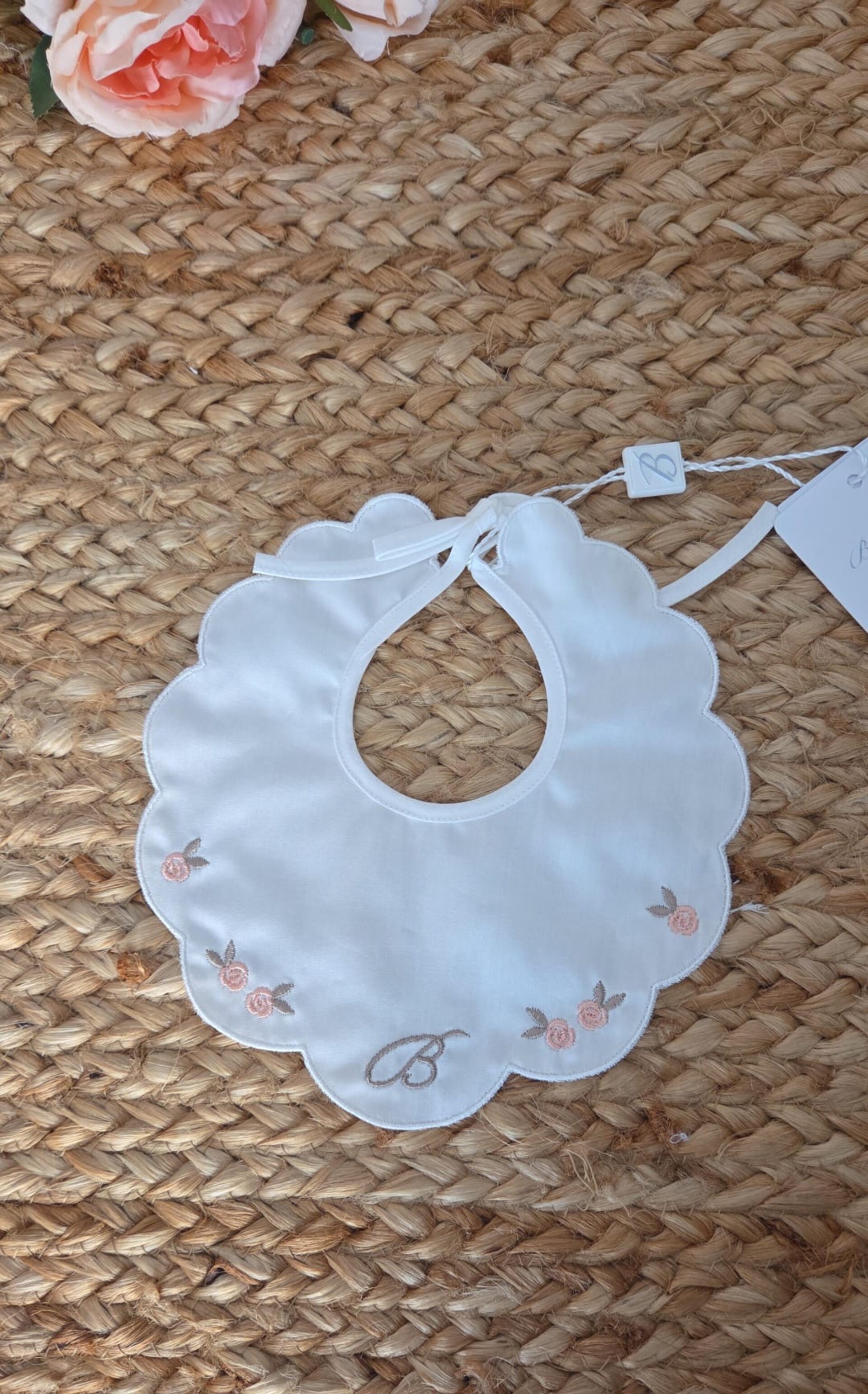 Bavetta bianca in puro cotone prodotta in Italia da Barcellino con fiorellini ricamati e fodera integrata.