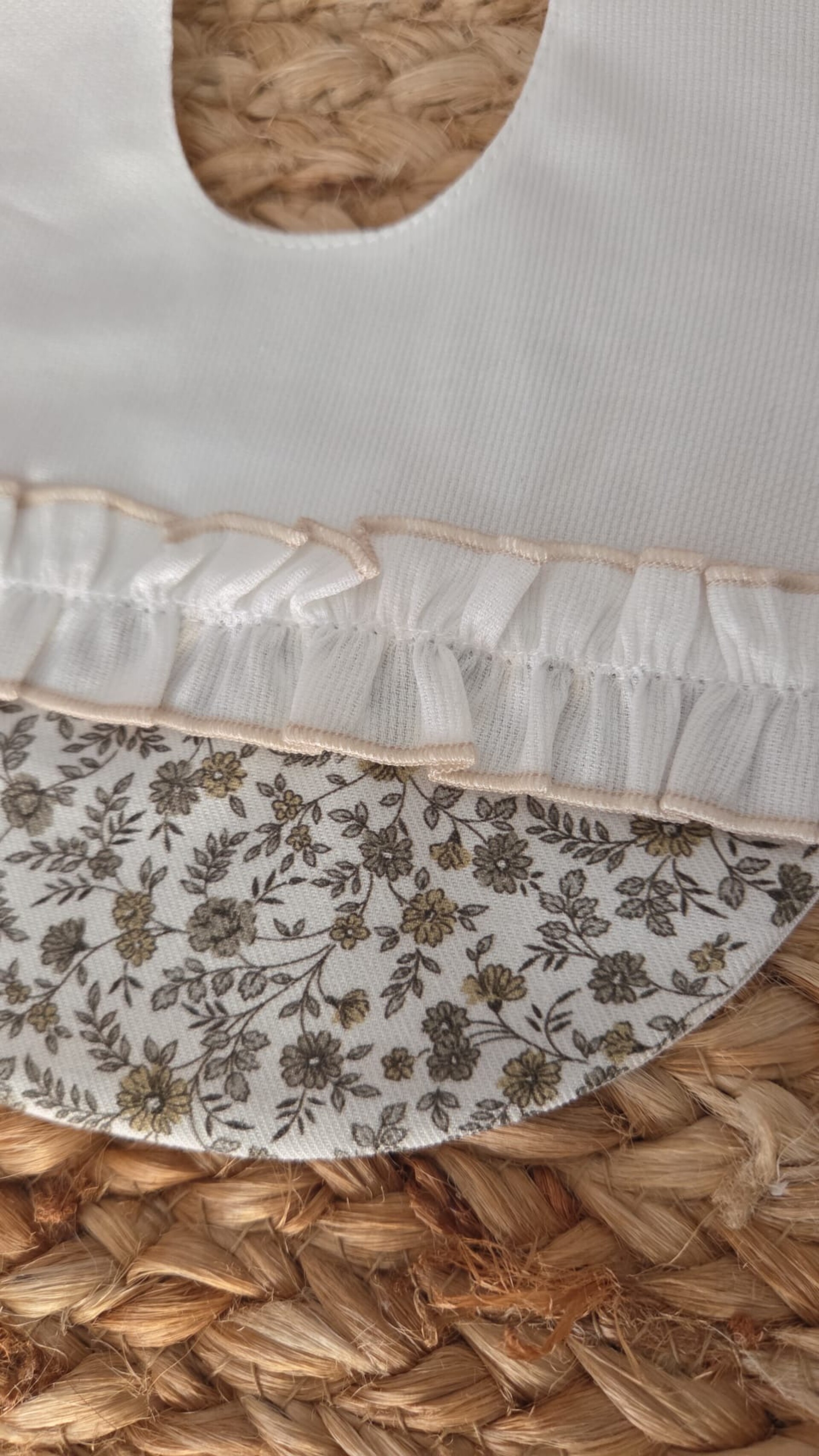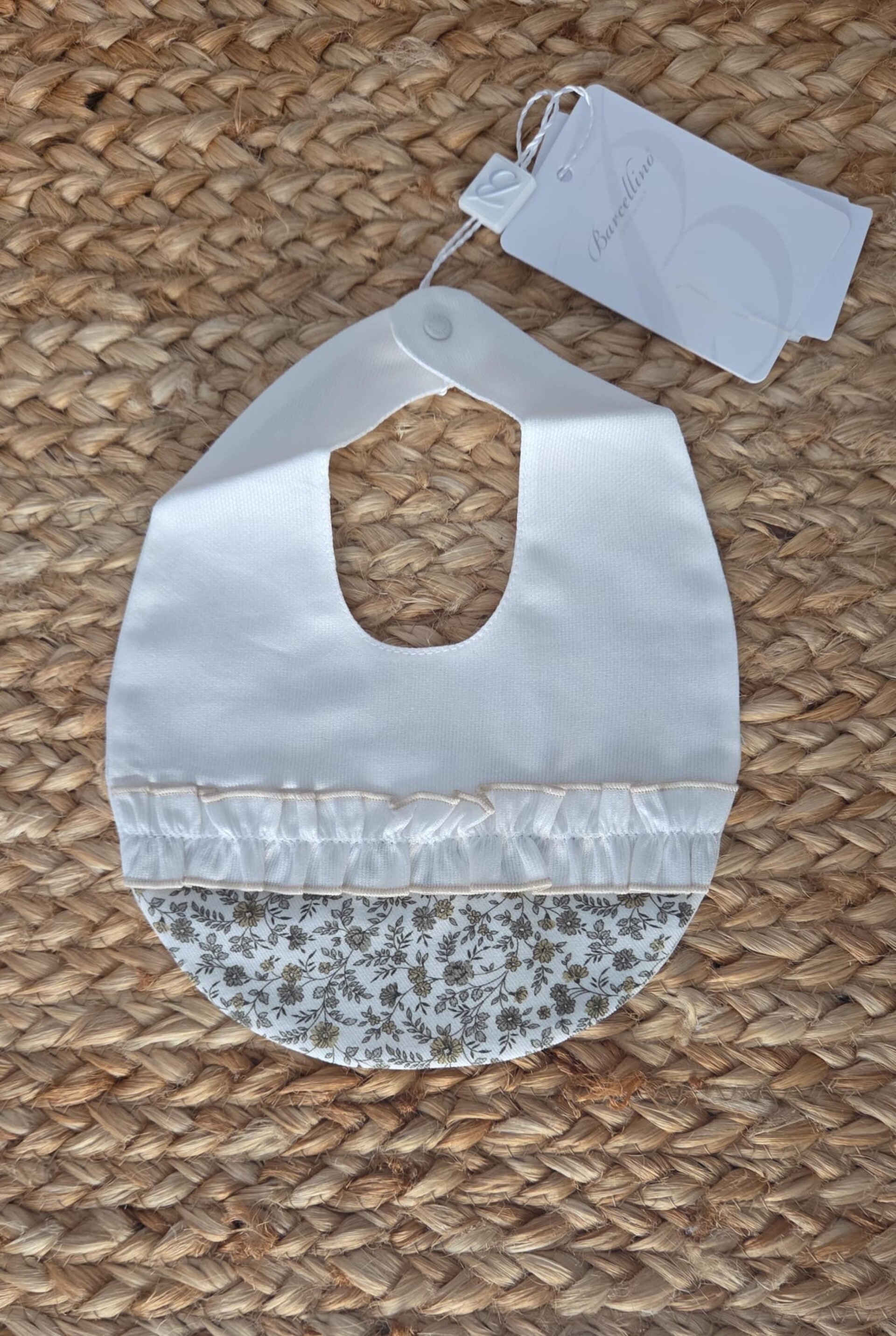 Bavetta bianca in puro cotone prodotta in Italia da Barcellino con fiorellini stampati e fodera integrata.