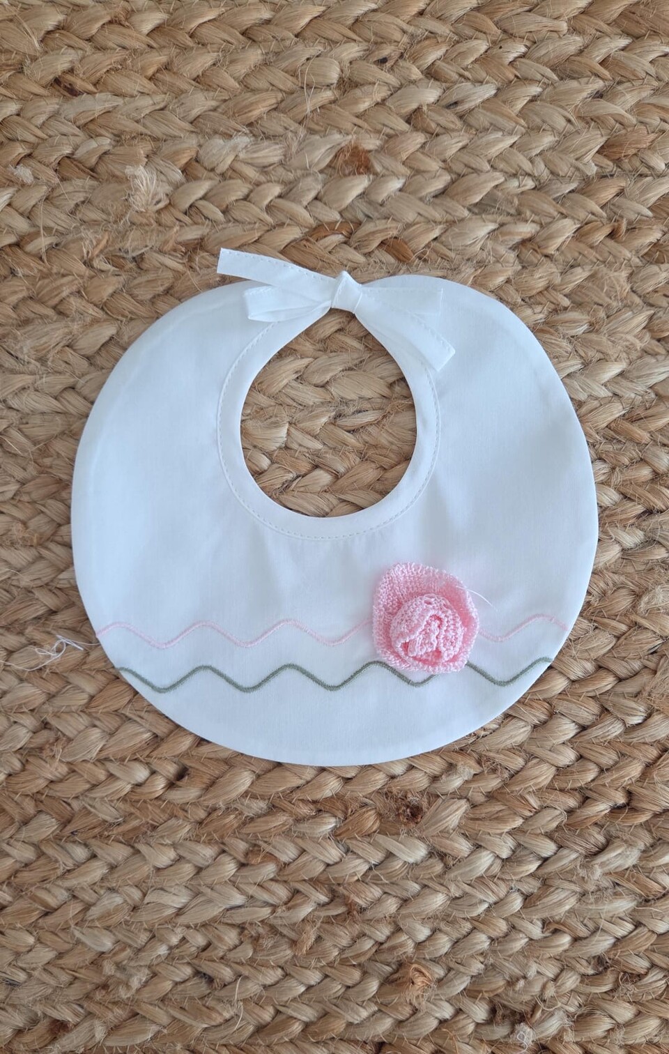 Bavetta in puro cotone con fiore in rilievo e fodera integrata.