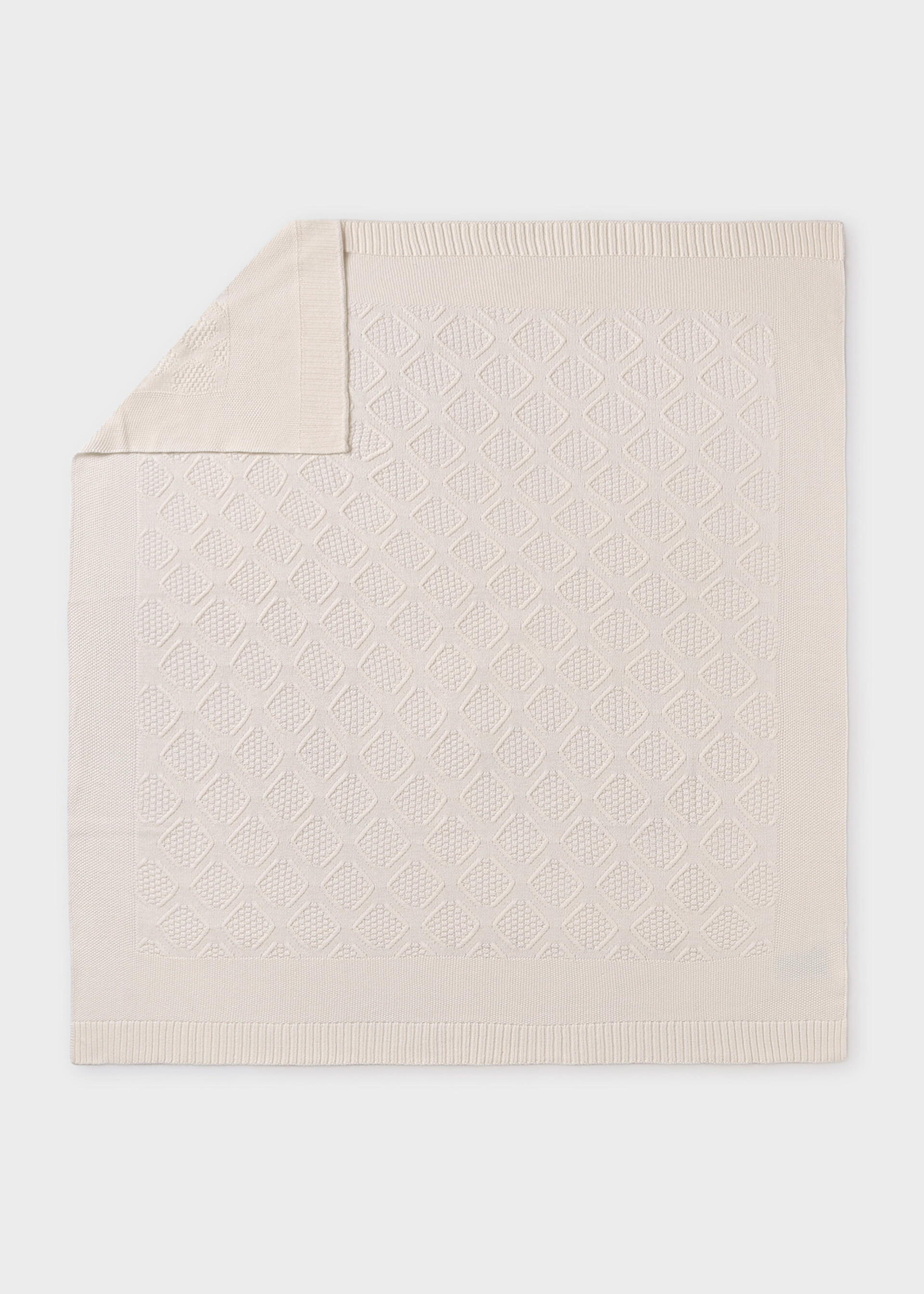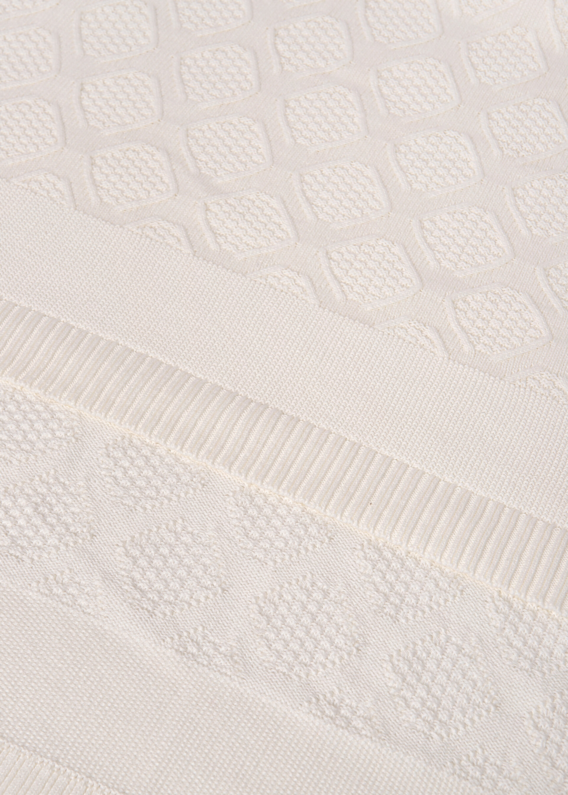 Copertina per carrozzina in caldo cotone fantasia a rombi color panna.