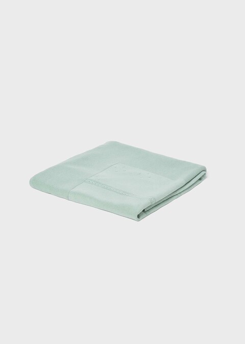 Copertina per carrozzina in filo di cotone color verde alga.