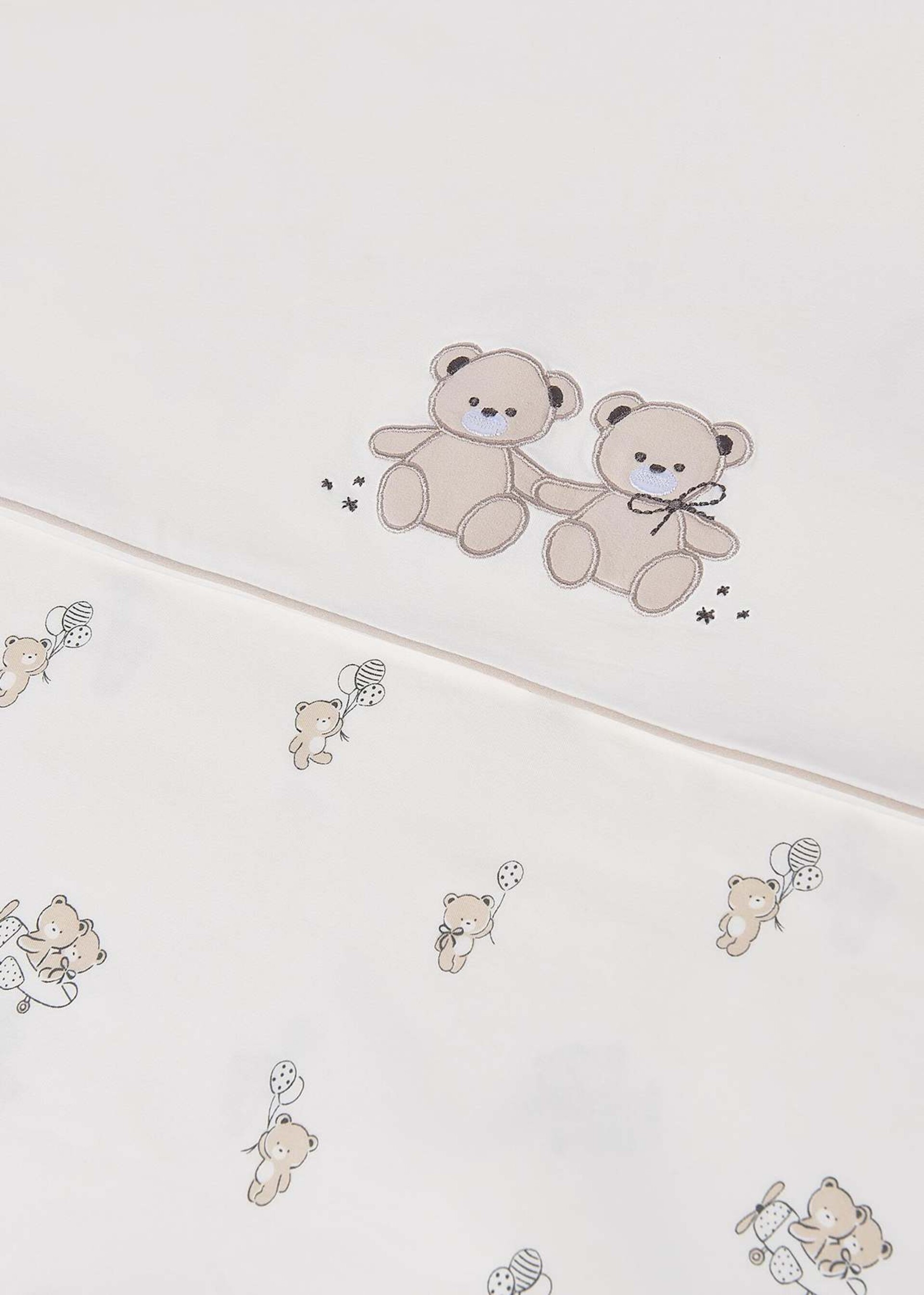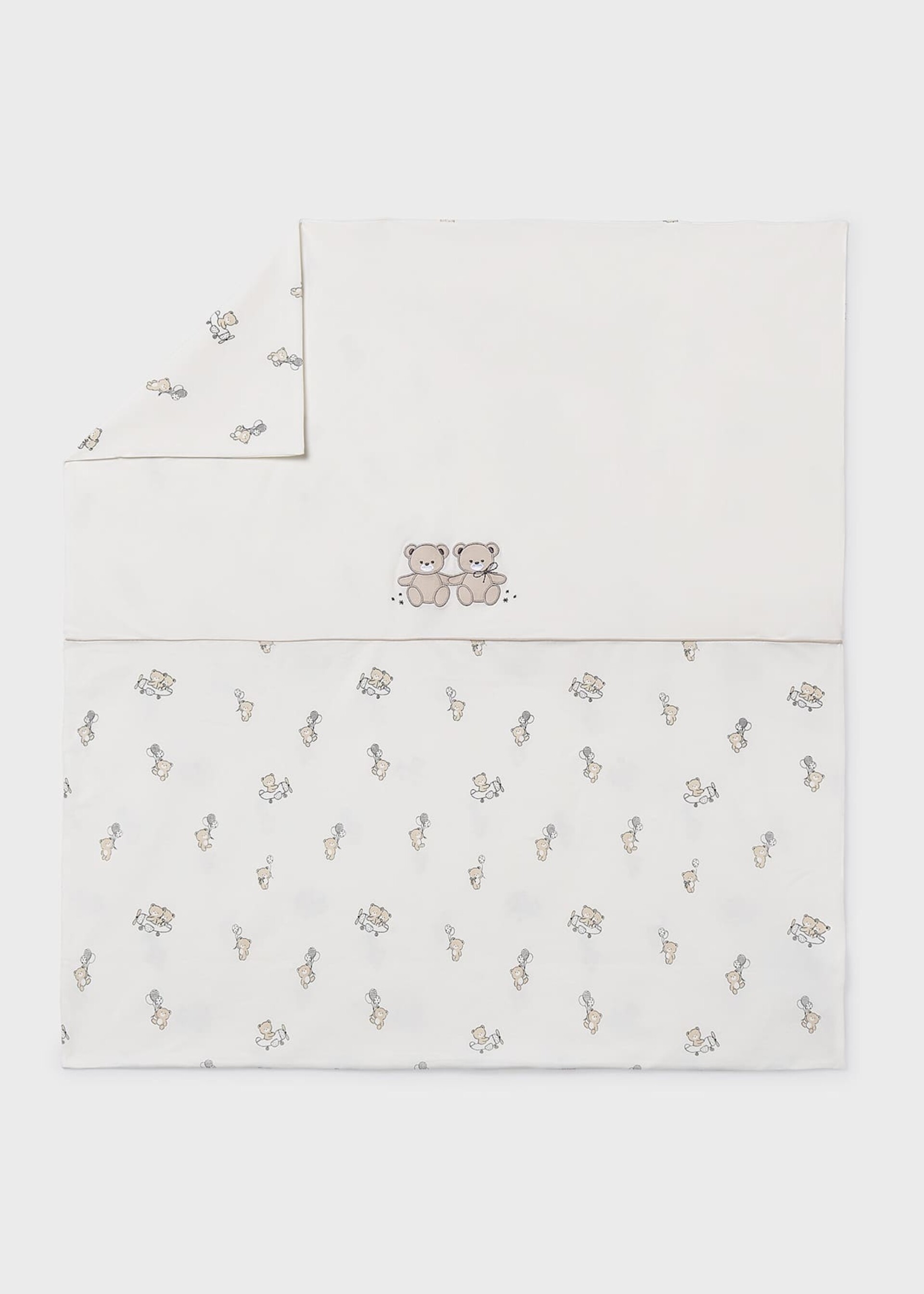 Copertina per carrozzina in jersey di cotone color panna con stampa orsetti e fodera integrata.