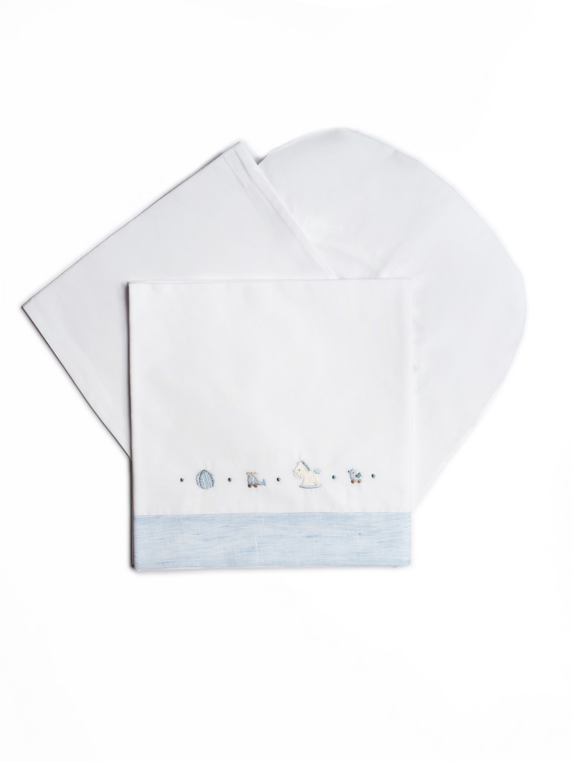 Set lenzuolino 3 pezzi bianco in puro cotone con dettagli ricamati, lenzuolo sotto con elastici e federa.