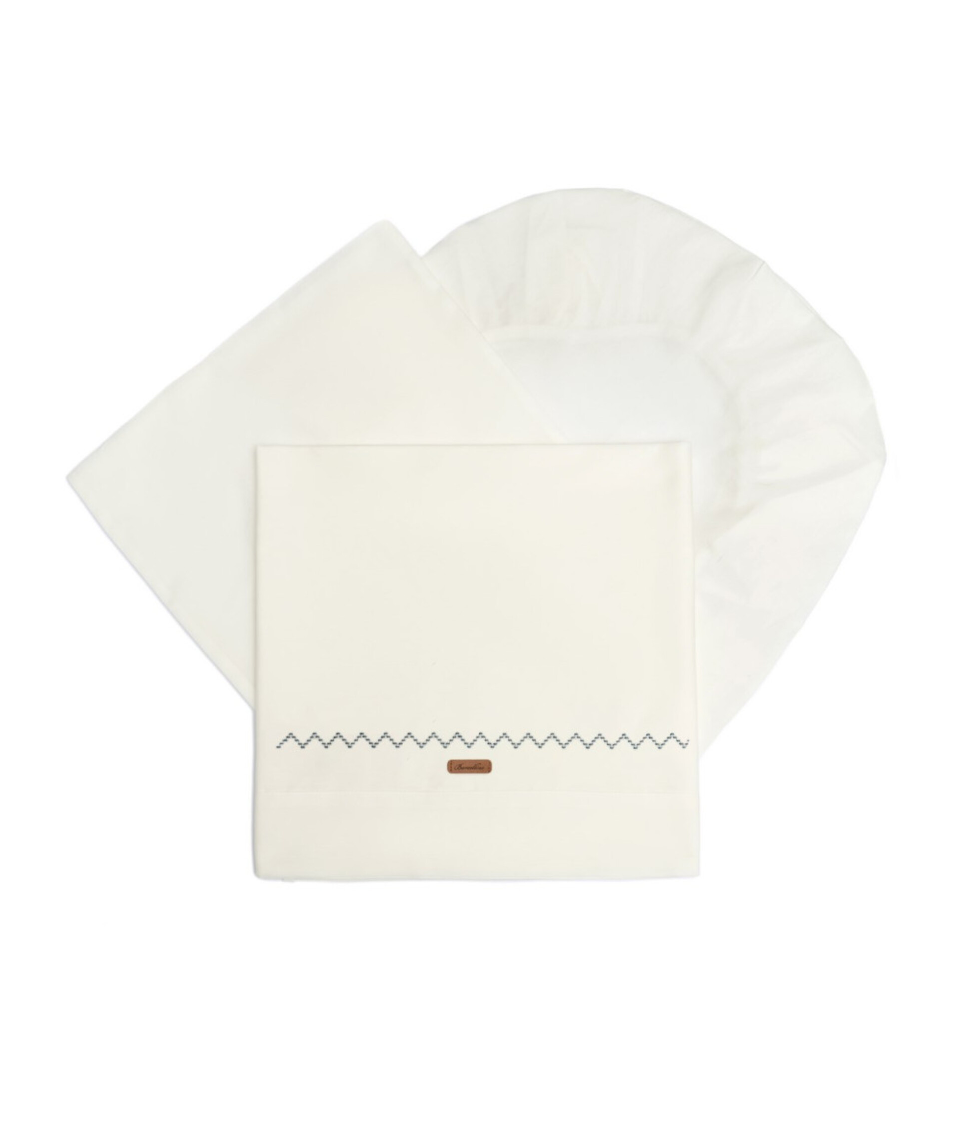 Set lenzuolino 3 pezzi bianco in puro cotone con ricamo blu, lenzuolo sotto con elastici e federa.