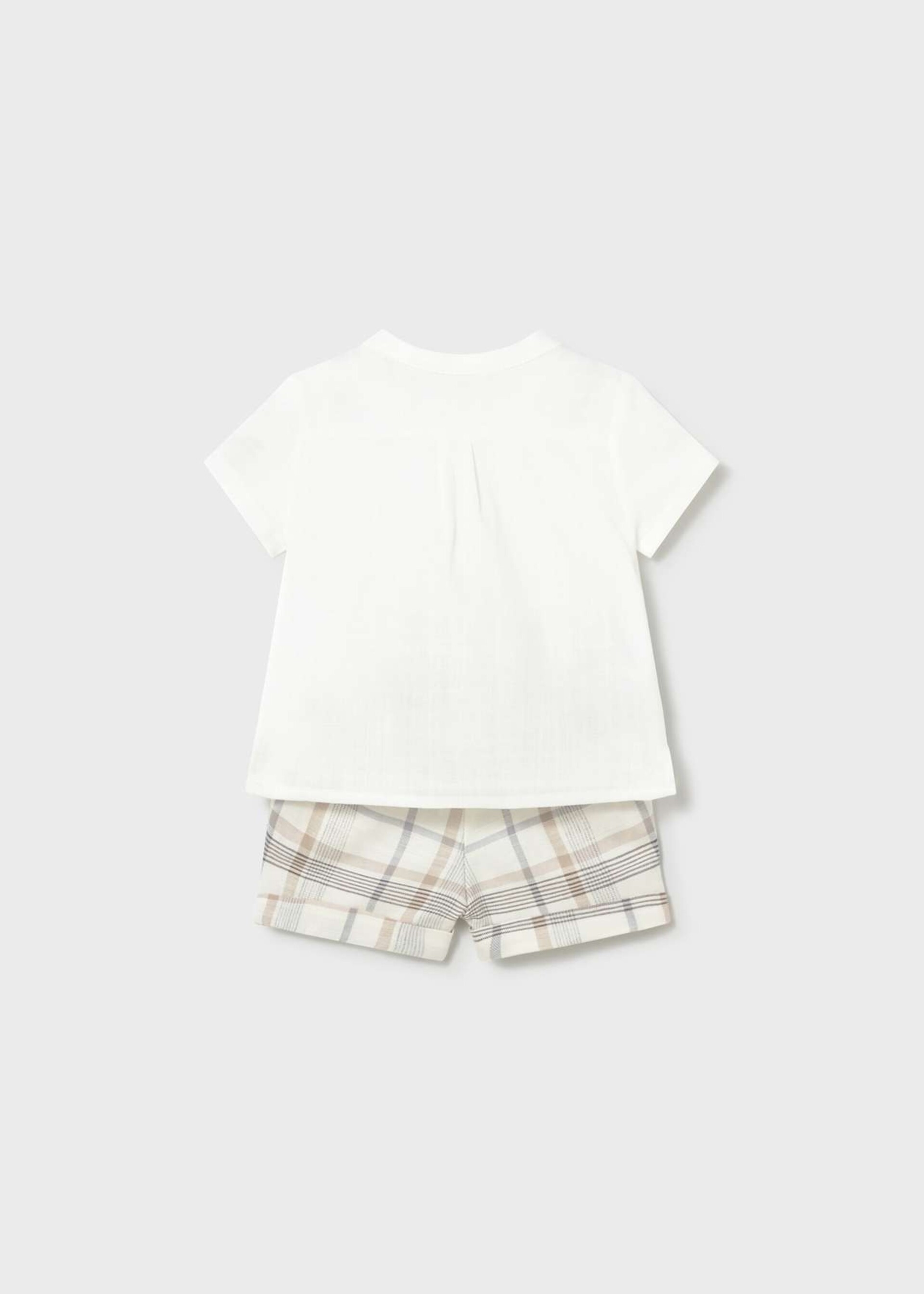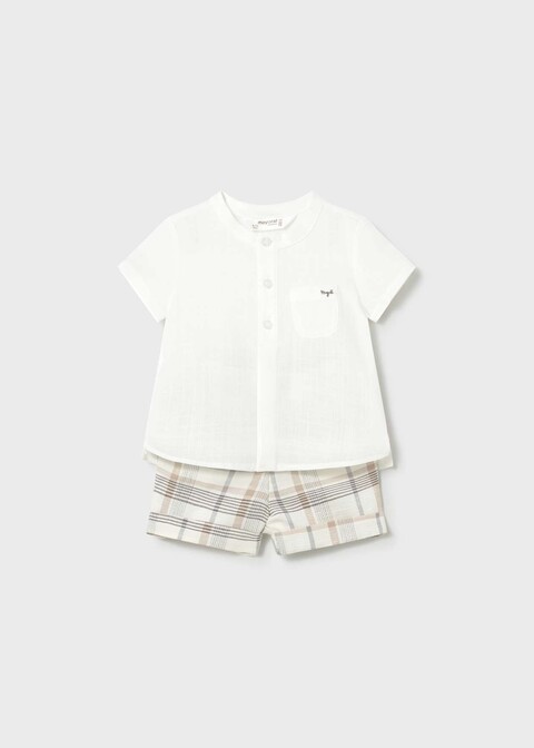 Pantaloncino a quadri con elastico in vita e asola e bottone.