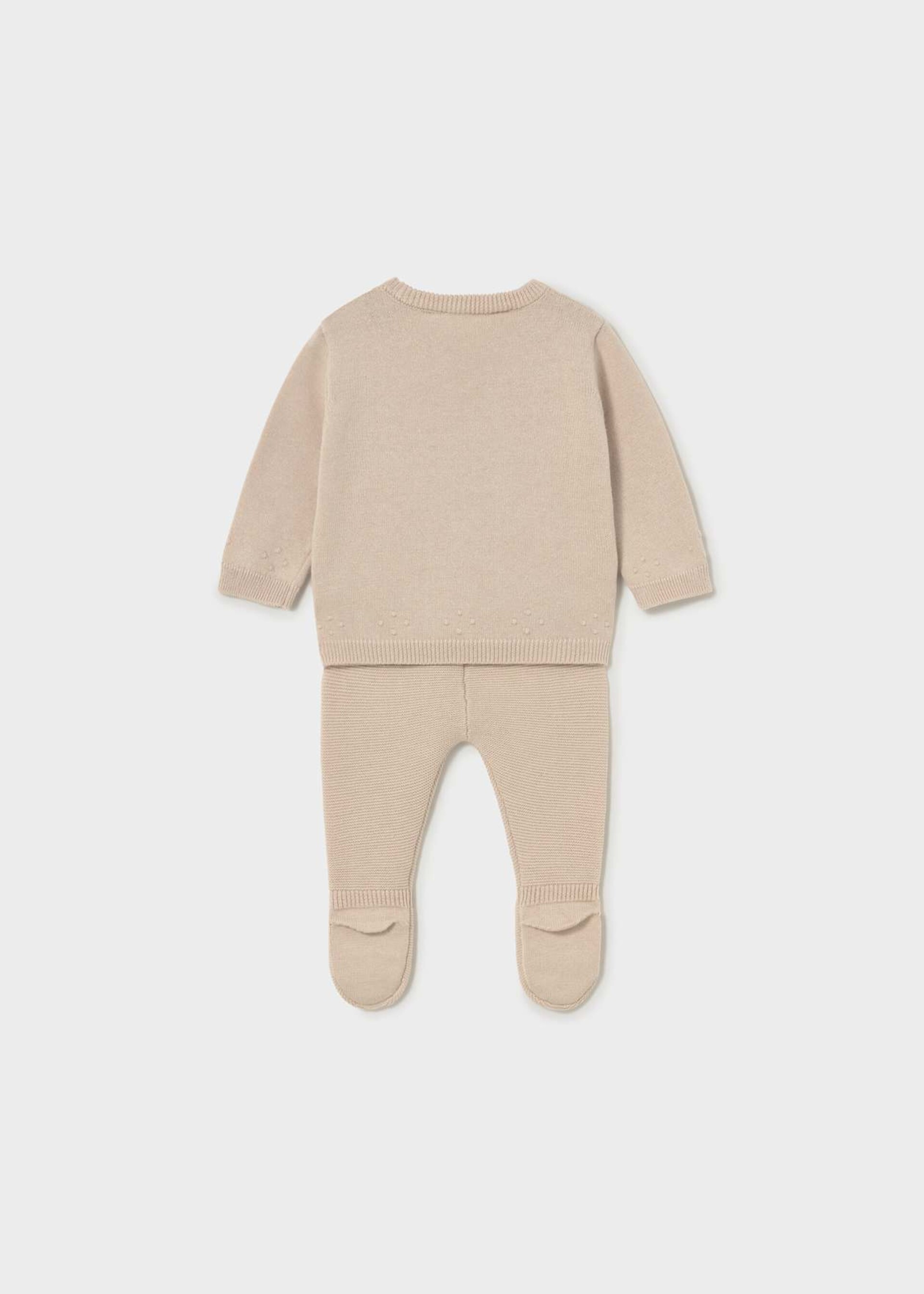 Completo 2 pezzi in filo di puro cotone tortora con maglia e ghettina.