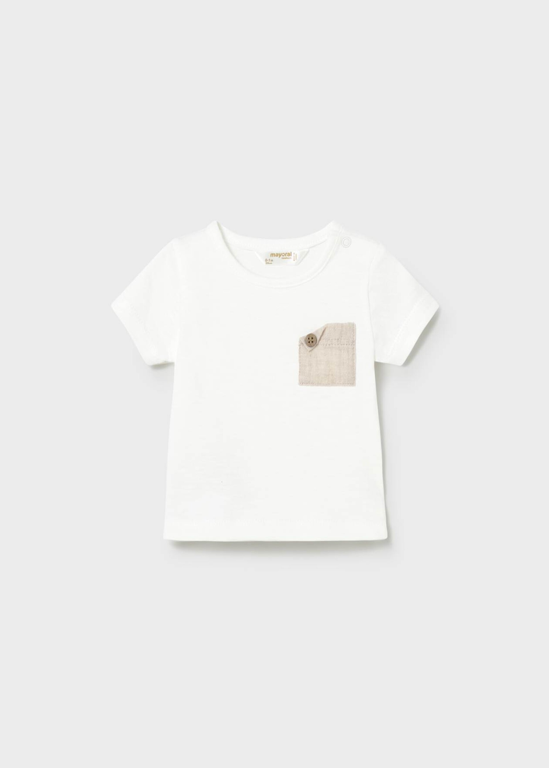 Maglietta mezza manica bianca con taschino, apertura sulla spalla con automatico a pressione.