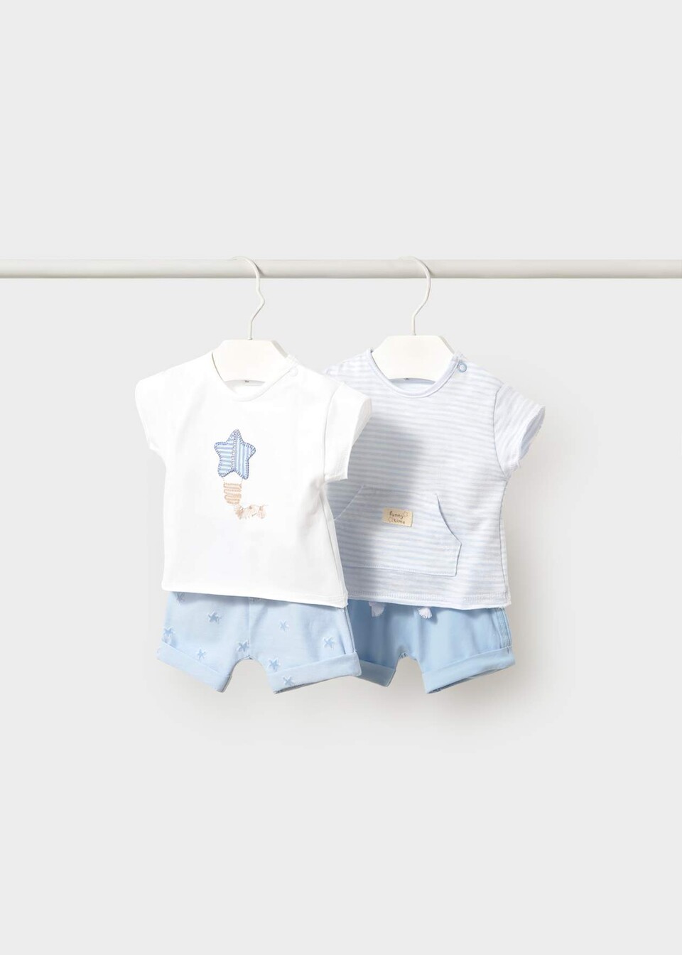 Due magliette manica corta, apertura sulla spalla con automatico a pressione.