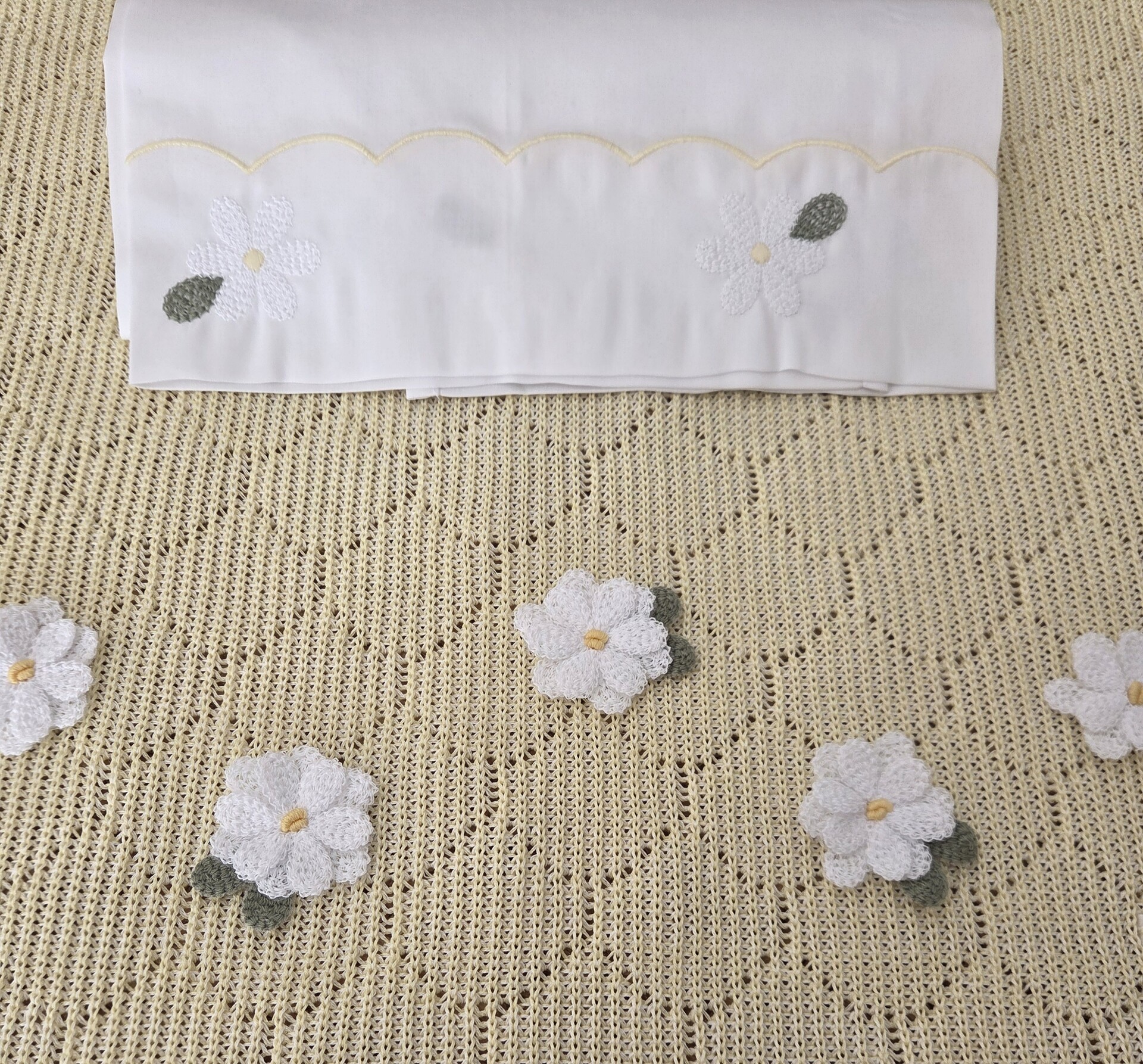Su richiesta è possibile personalizzare il lenzuolino di questo completo con: