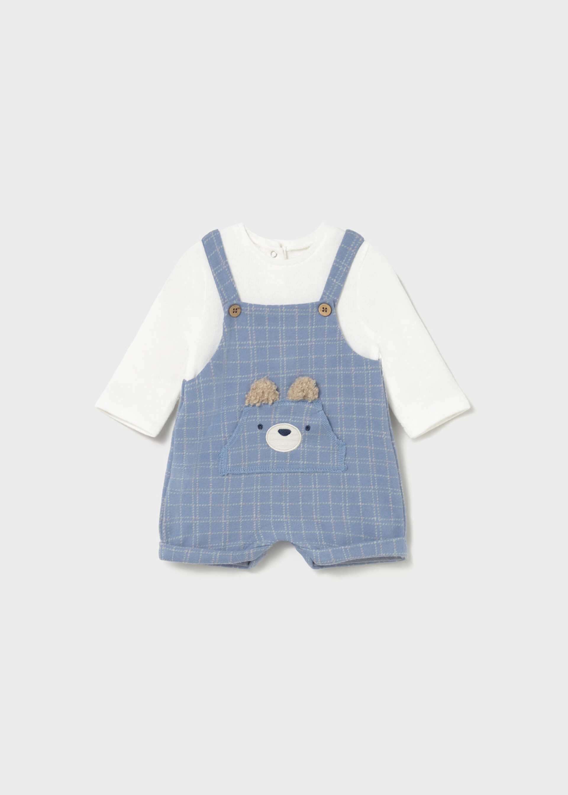Pagliaccetto manica lunga in caldo cotone con salopette integrata.