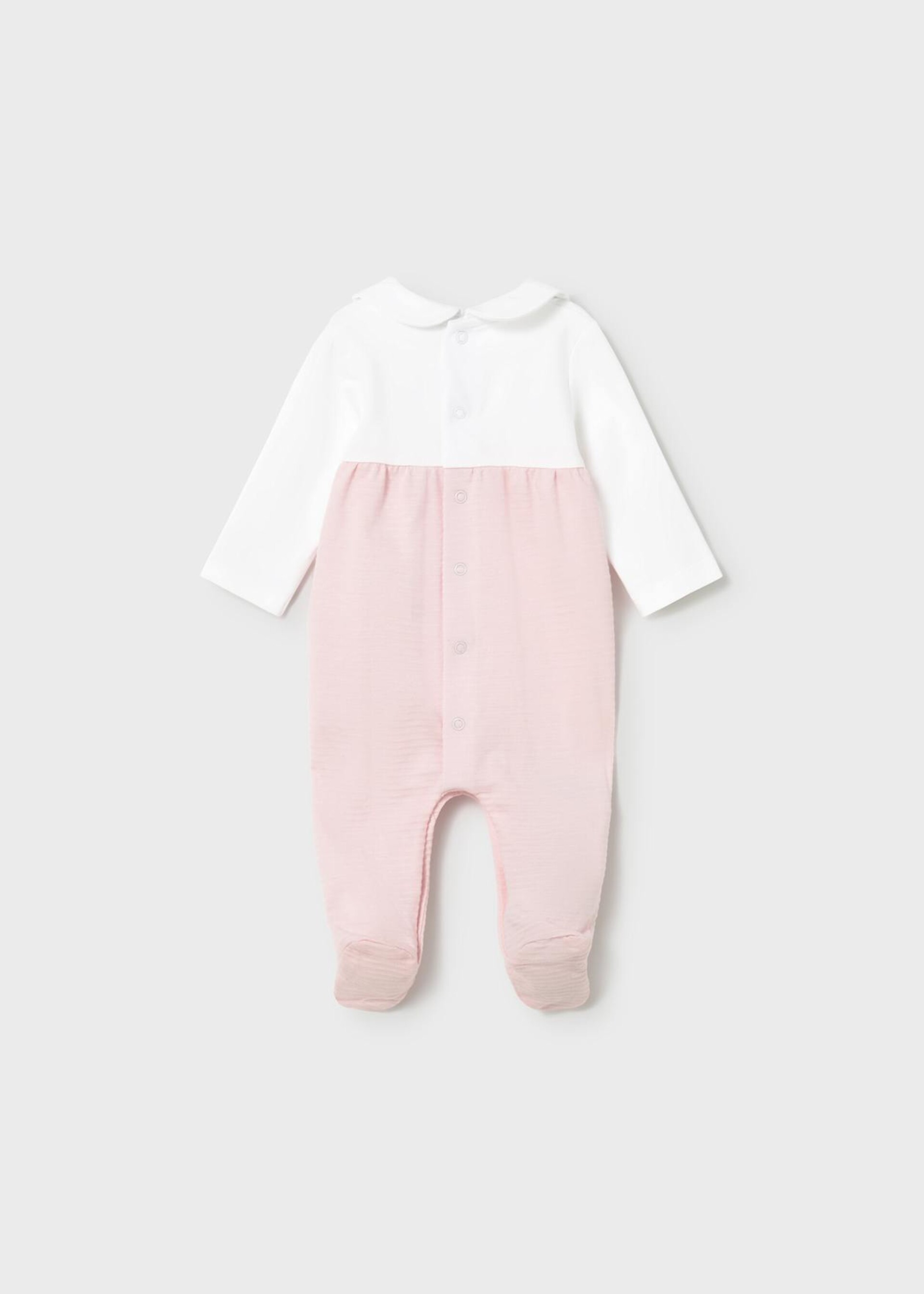 Set 2 tutine in jersey di cotone color rosa e bianco con colletto.