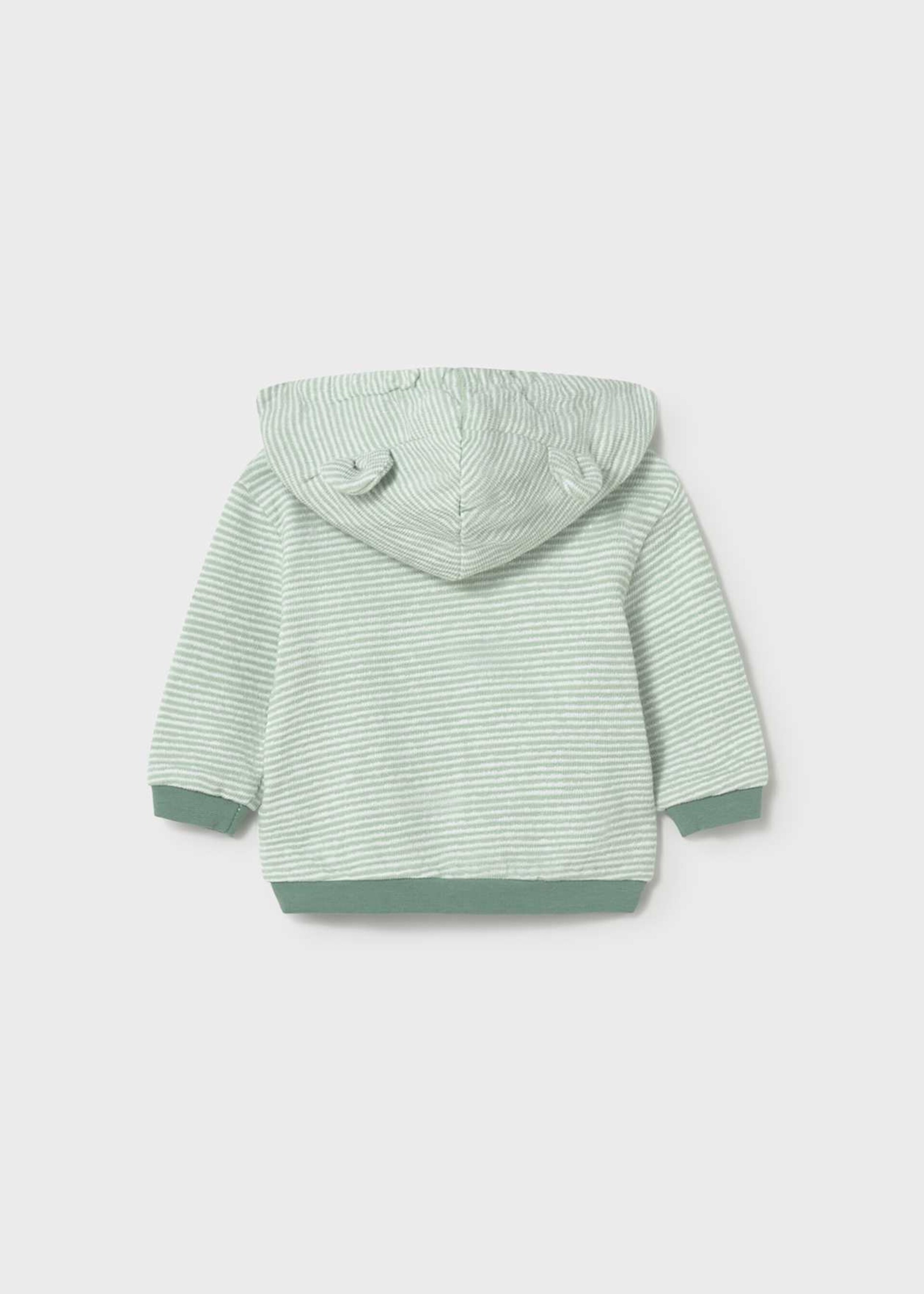 Felpa con cappuccio a righe bianche e verdi, apertura anteriore con cerniera.