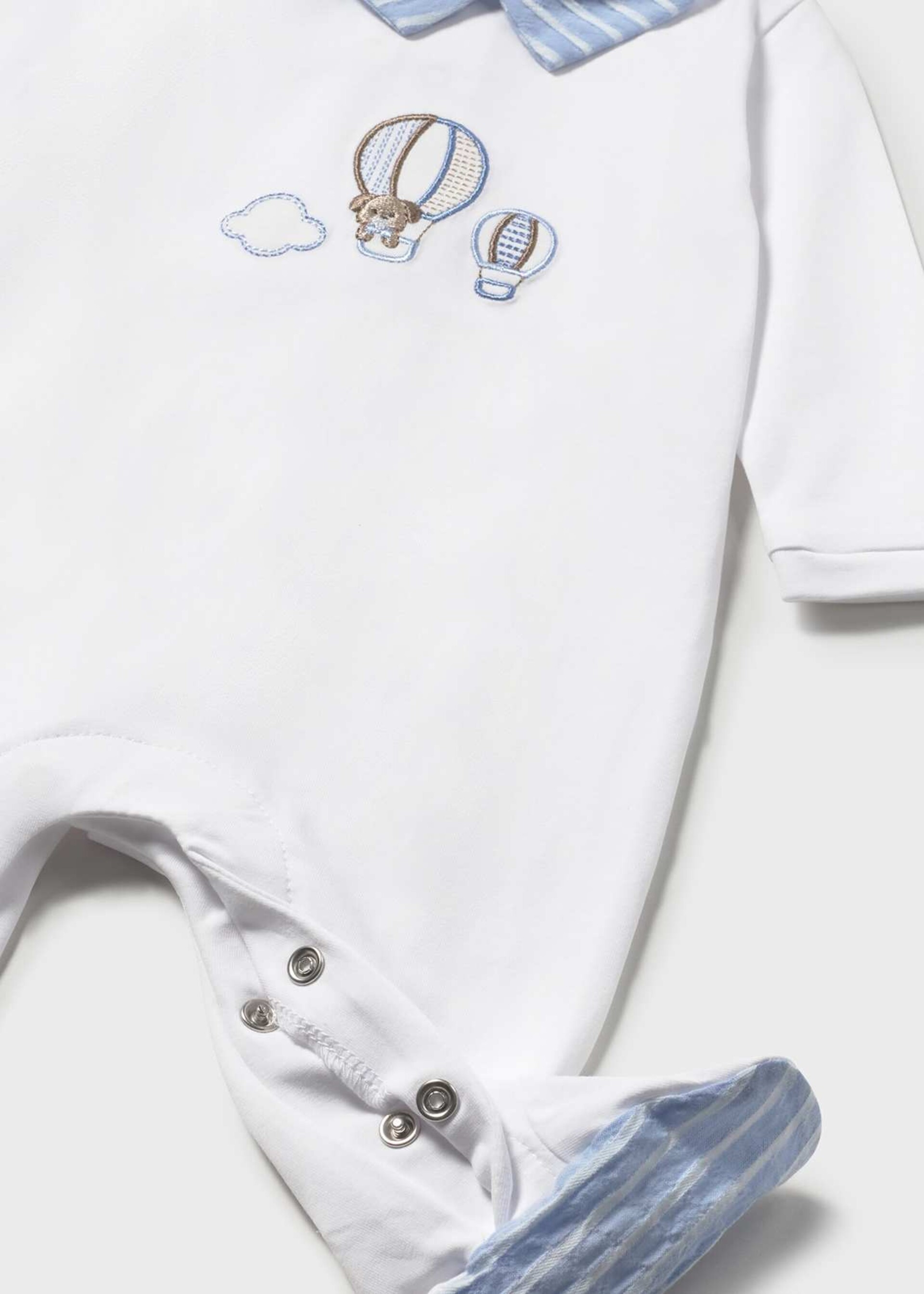 Tutina in jersey di cotone con colletto, mongolfiera e orsetto.