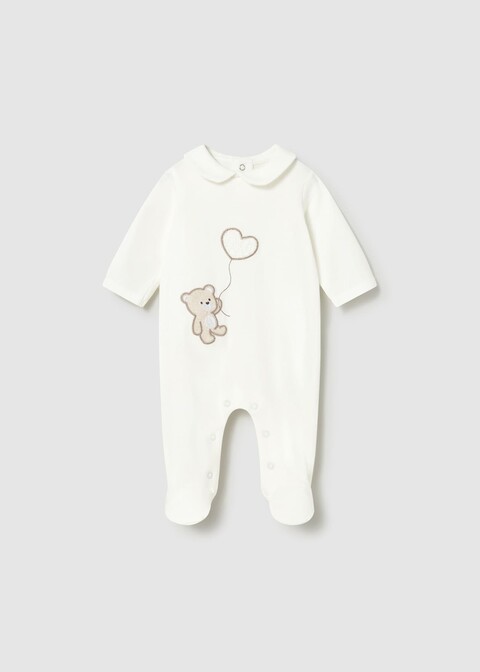 Tutina in jersey di cotone con colletto, orsetto e dettagli ricamati.