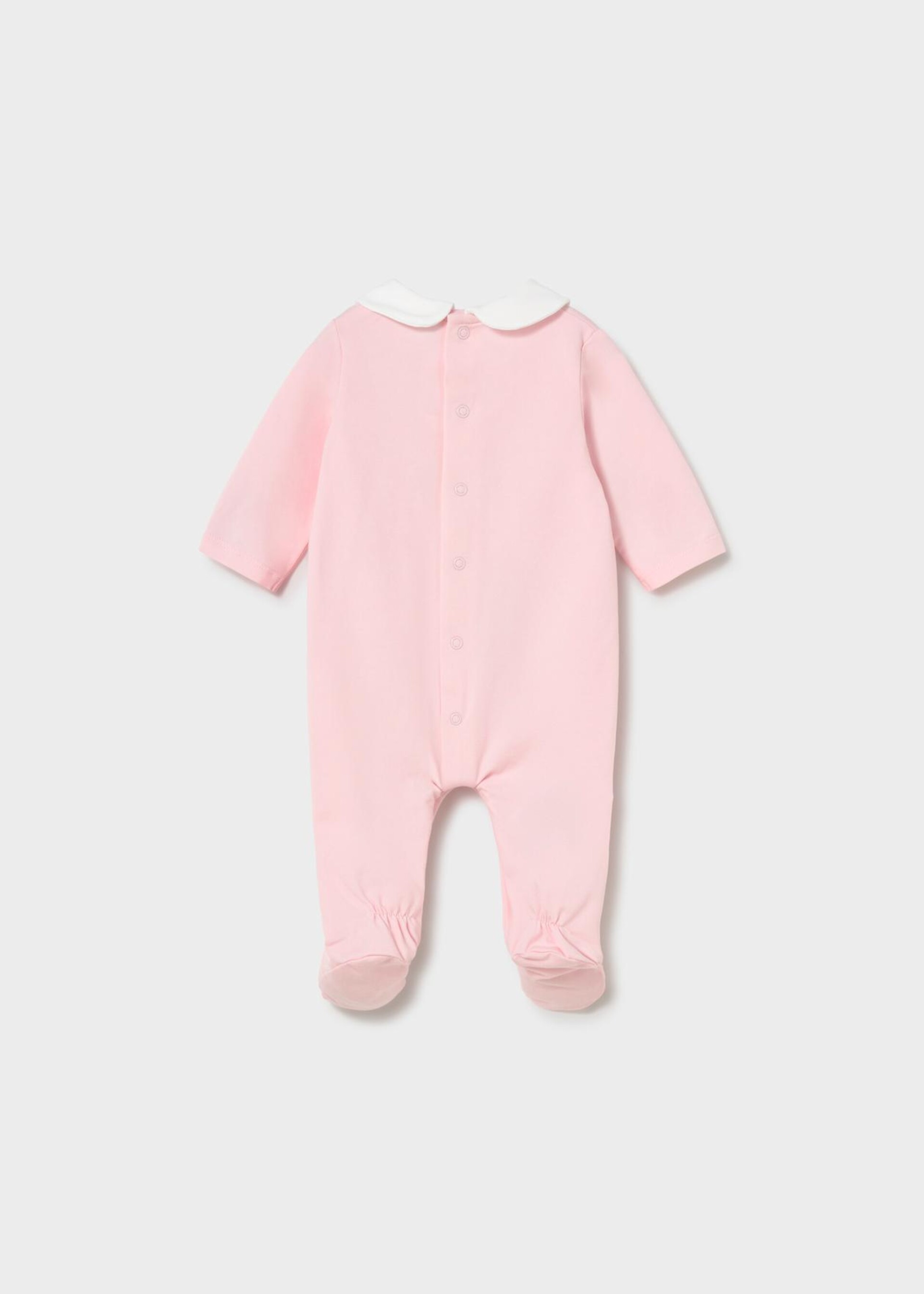 Tutina in jersey di cotone con colletto, orsetto e dettagli ricamati.
