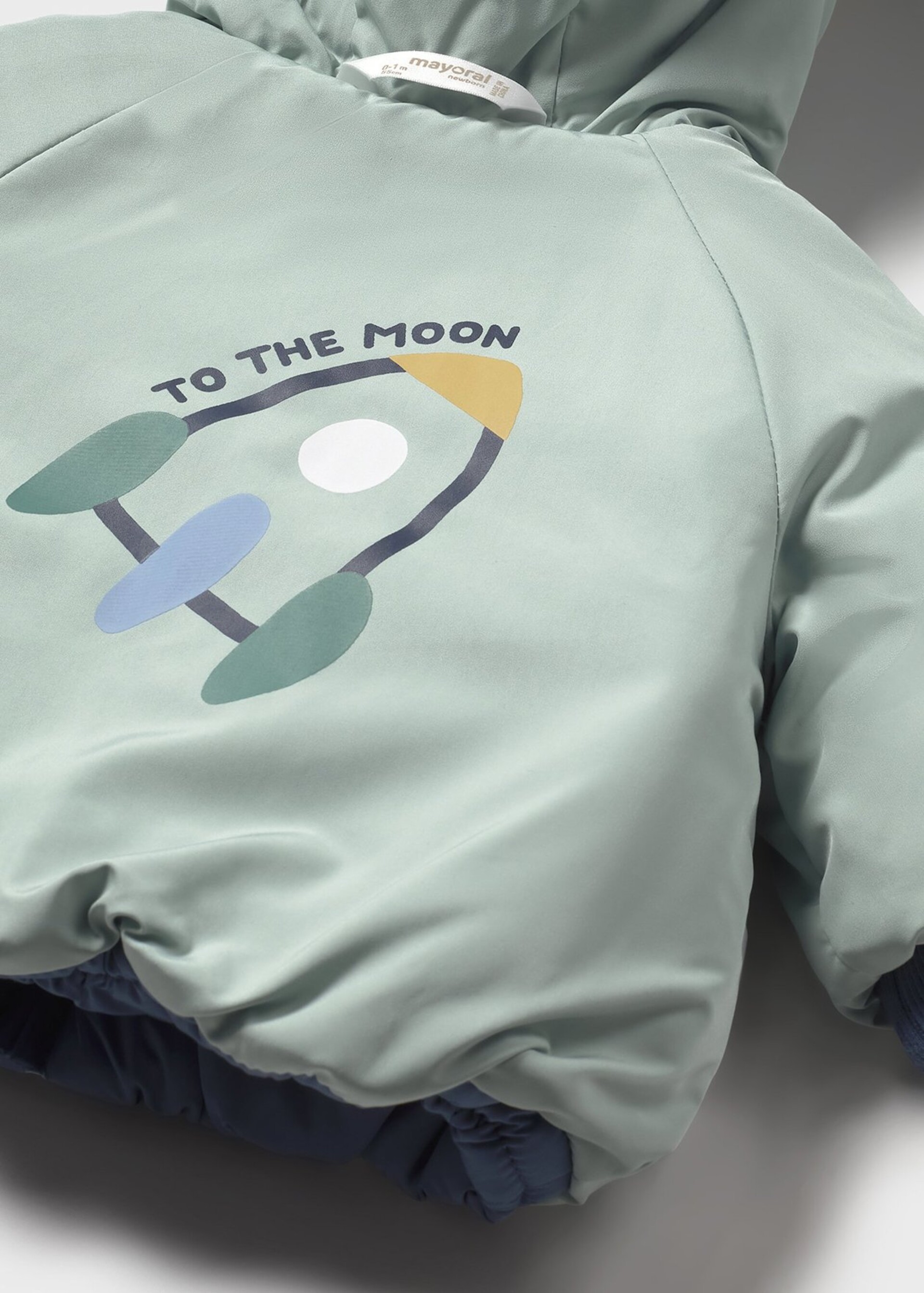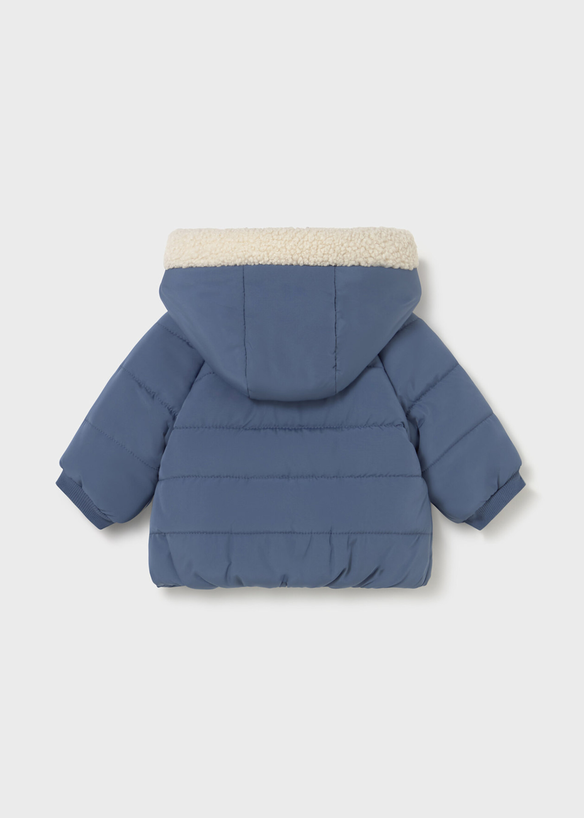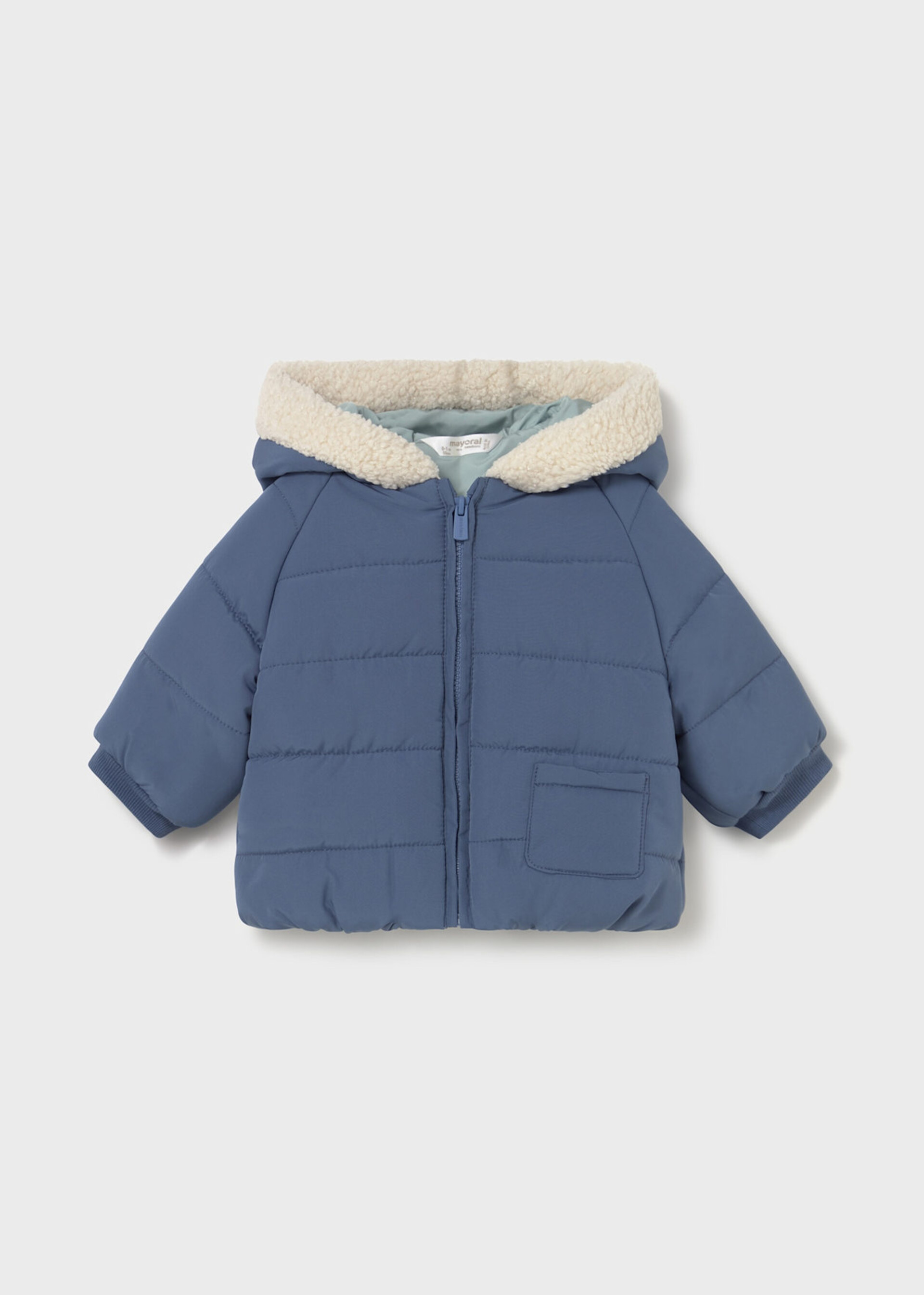 Giubbotto neonato con cappuccio e dettagli in pellicciotto.