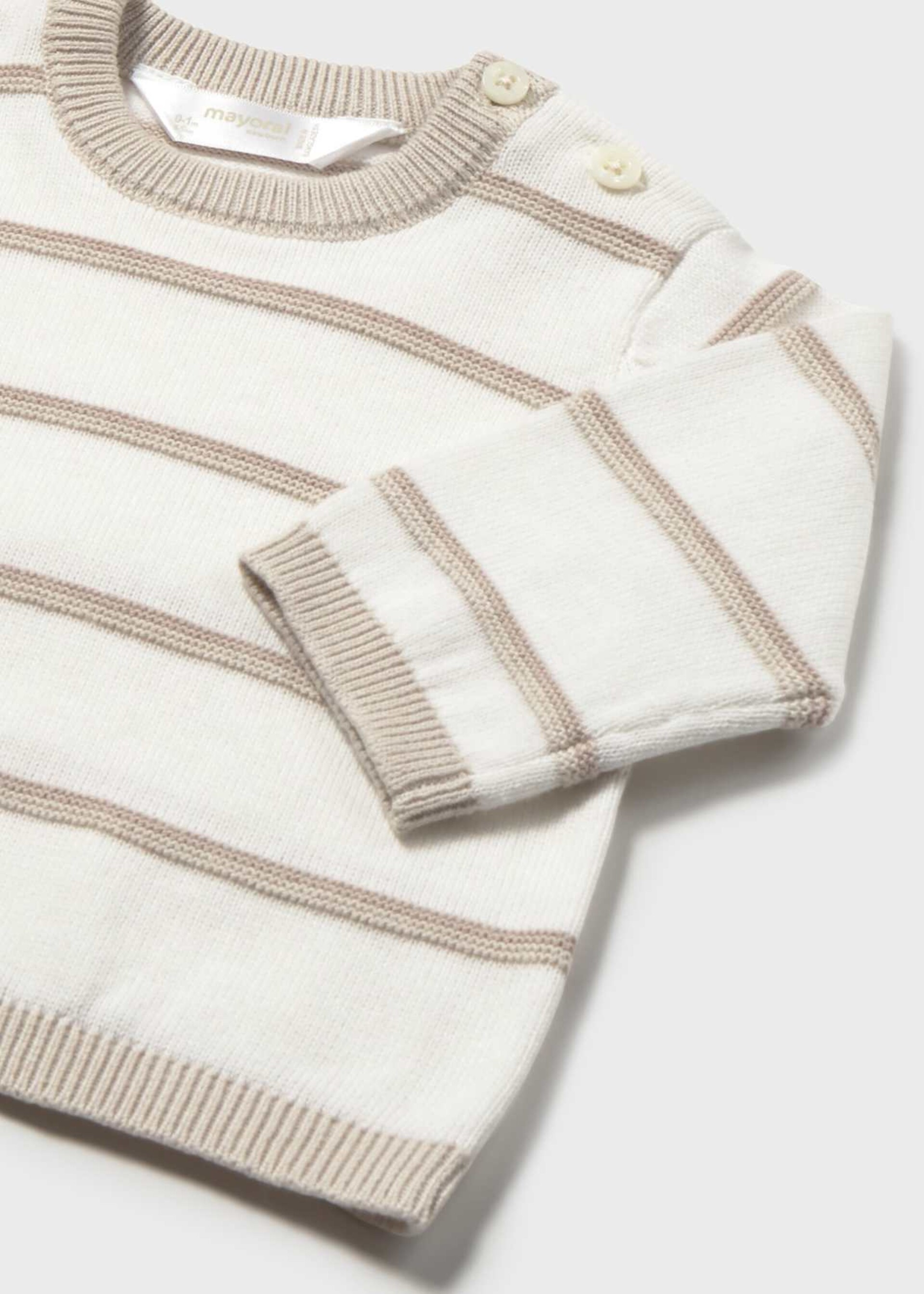 Morbido maglione per neonato in puro cotone a righe bianche e tortora.