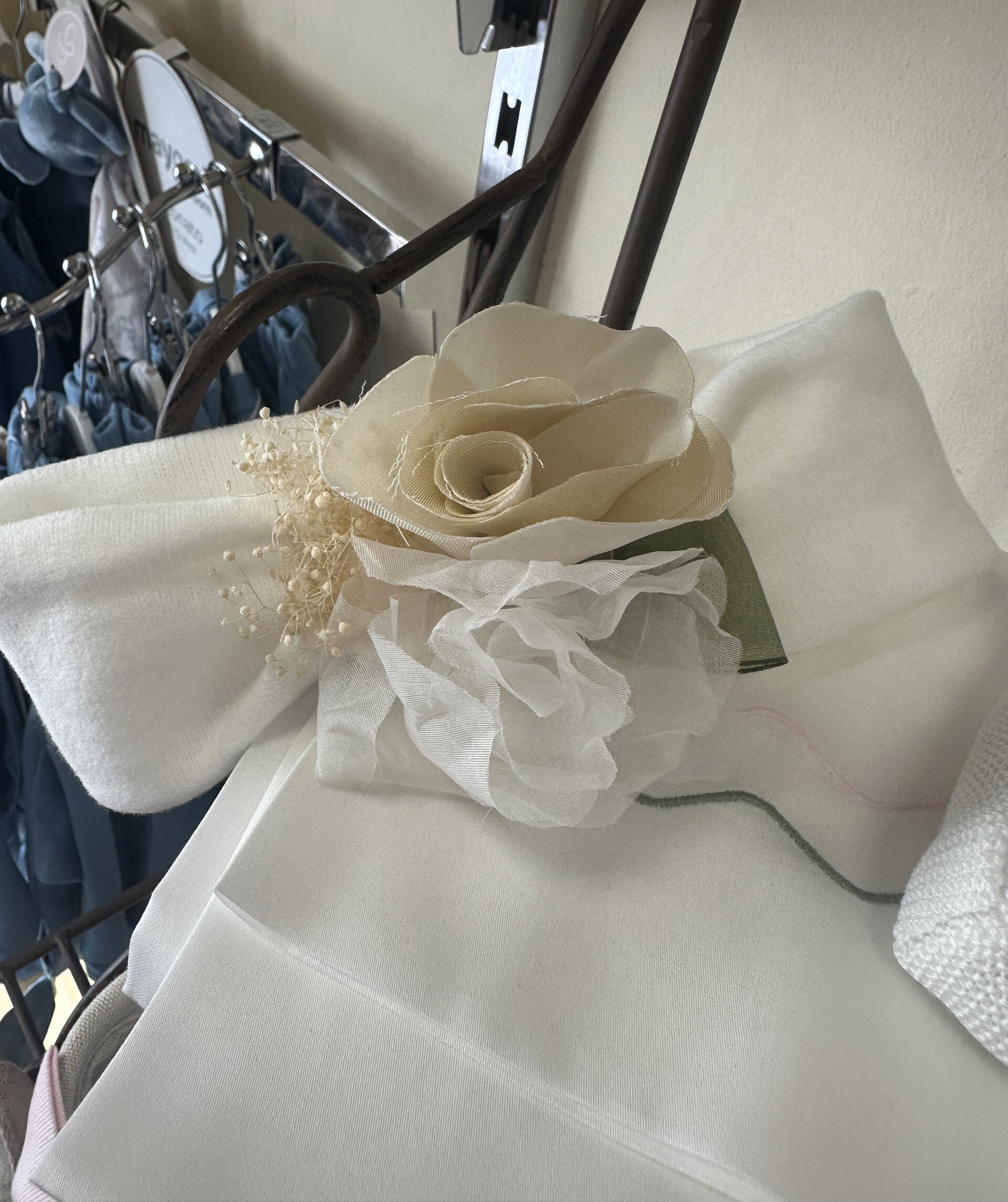 Il dettaglio romantico è la cintura con fiori applicati che può essere facilmente rimossa per un look più semplice e versatile.